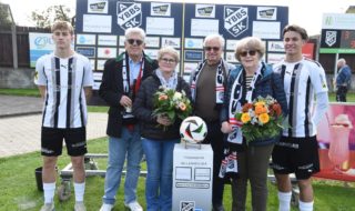 Der ASK Bau Pöchhacker Ybbs bedankt sich bei der Bäckerei Weinberger in Ybbs – vertreten durch Senior-Chef Günther Weinberger – für die Matchpatronanz gegen Korneuburg. Den Matchball spendete Doris Haberbusch. Die Tochter von ASK-Ehrenmitglied Leopold Weigl erinnerte mit dieser Geste an den 100sten Geburtstag, den Leopold Weigl am 1. Oktober gefeiert hätte. Doris Haberbusch und Günther Weinberger, die vor langer Zeit auch gemeinsam die Schulbank gedrückt haben, nahmen auch gemeinsam mit ASK-Kapitän Fabian Holzer den Ehrenankick vor.