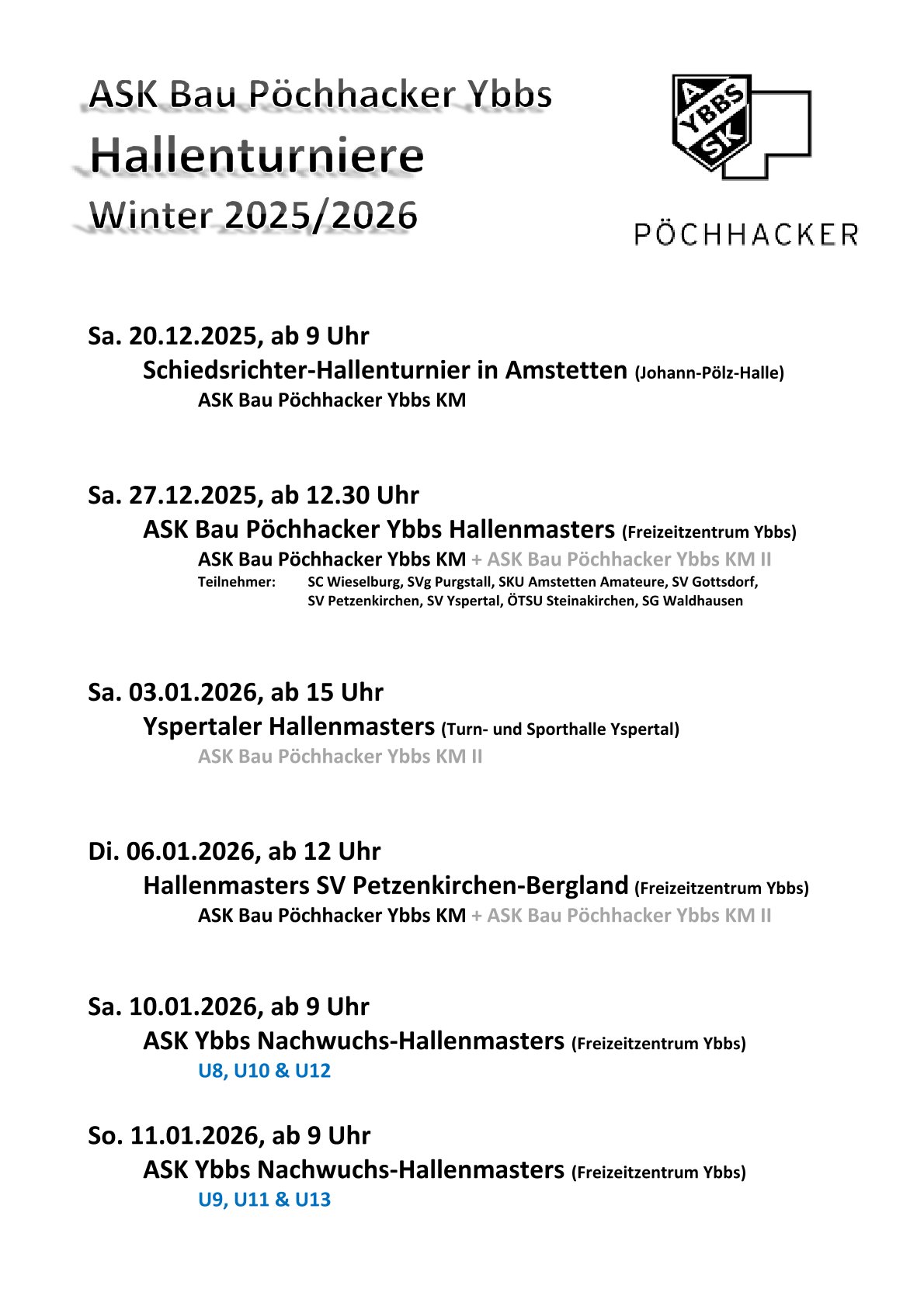 Doch bevor Ende Jänner endgültig in die Frühjahrsvorbereitung gestartet wird, stehen für beide Mannschaften noch mehrere Hallenturniere auf dem Programm.