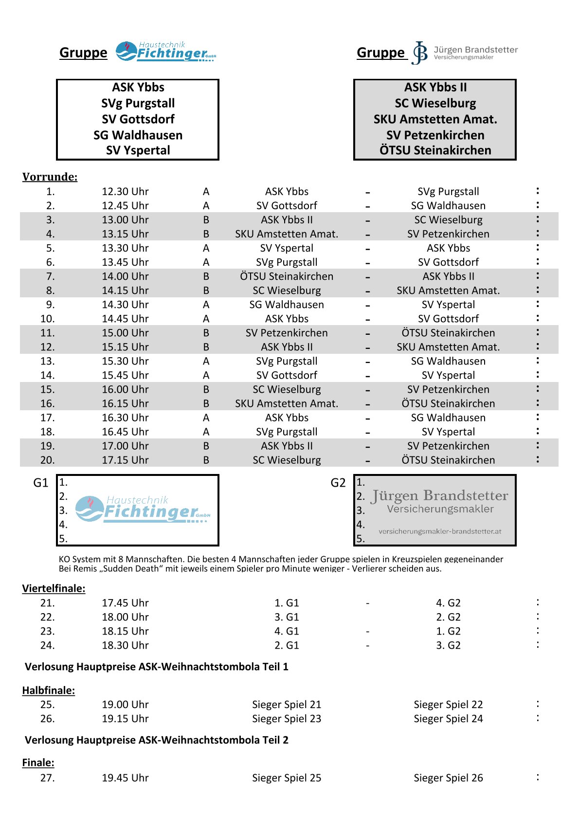 Im Vorjahr lieferten sich die ASK Allstars Maximahl und der ASK Ybbs I ein packendes Finale, in dem sich die Allstars schließlich durchsetzen konnten. Auch heuer hofft der ASK Ybbs auf zahlreiche Zuschauer und ein Turnier, das dem traditionsreichen Hallenmasters alle Ehre macht.